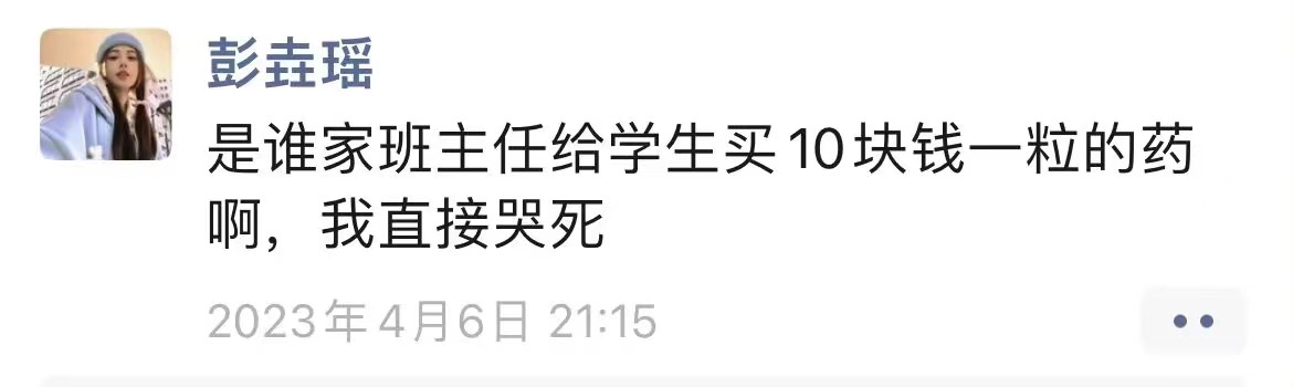 4月6日傍晚,班主任黄亮老师接到班干电话,报告班上发现有多名同学出现感冒发烧、喉咙痛,浑身无力等症状,接完电话黄亮老师立即放下碗筷,驱车到药店买药,由于正值流感高发季节,抗流感药物非常紧缺,班主任跑了好几家药店才买齐了布洛芬、感冒和专门的抗流感等针对性的药物送到员工宿舍,为员工送去了温暖和关爱。