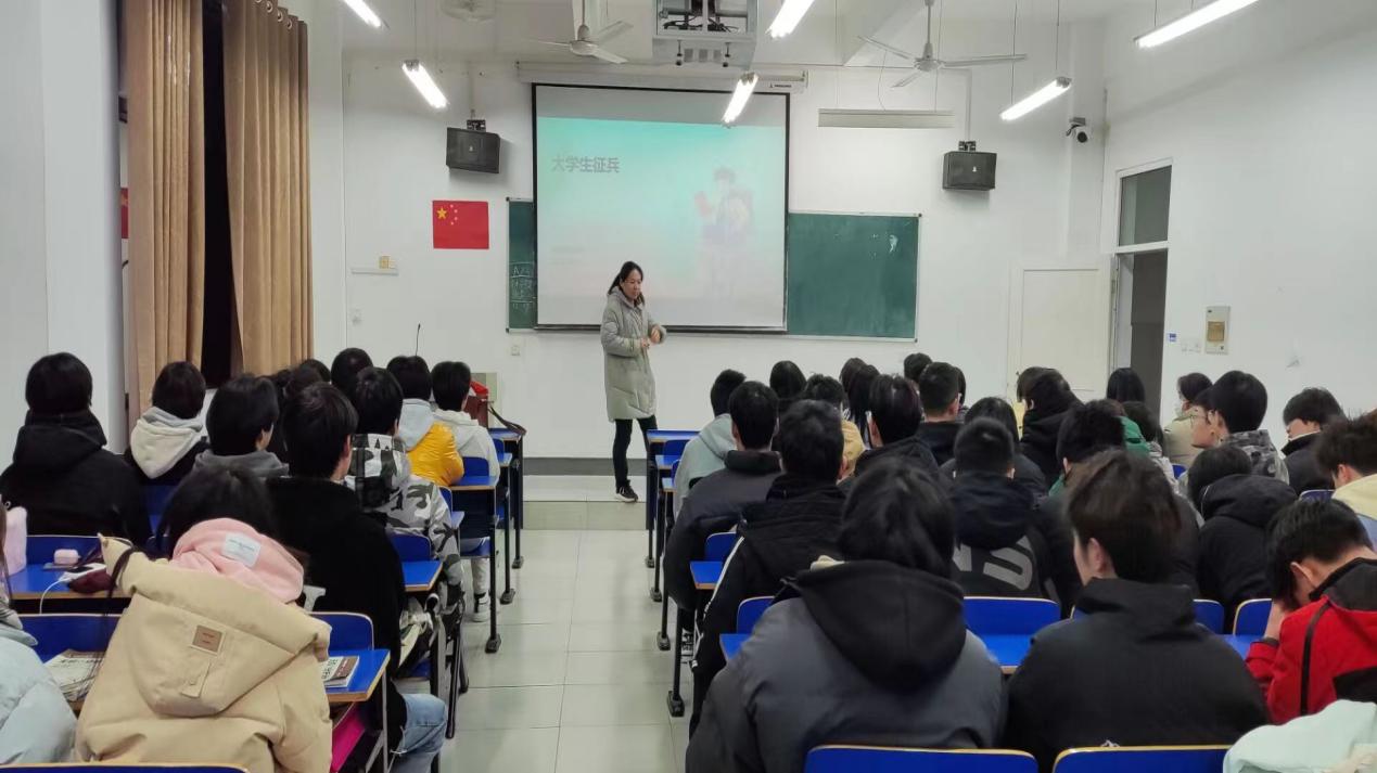 主题班会上,各班班委首先向同学们介绍了我国的征兵制度和征兵工作的重要性,强调了老员工参军对于国家和个人的重要意义。接着各班班主任介绍了大学毕业生应征入伍的条件、征兵工作的时间节点、应征入伍的优惠政策等方面的征兵知识,针对退伍士兵复学、升学、就业等方面的内容做了详细讲解,让同学们对于征兵有了更加全面和深入的了解。