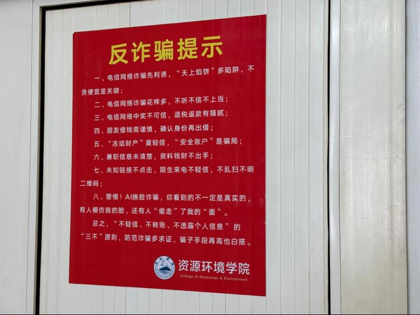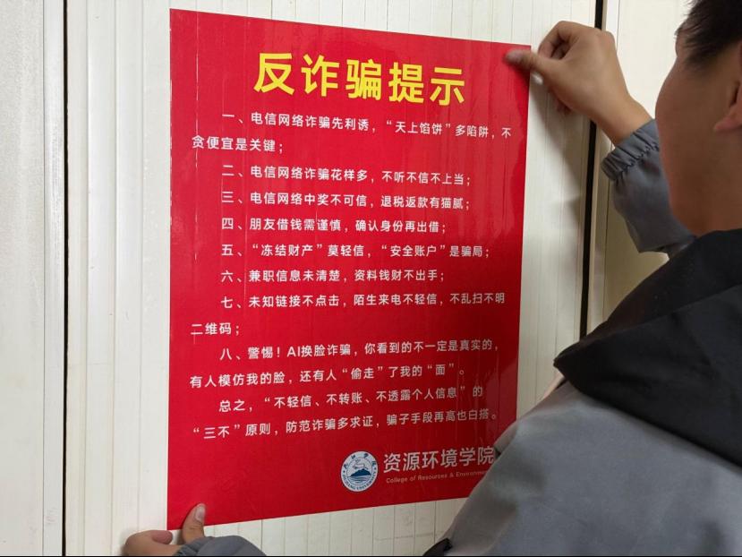 活动开展期间,由MK体育员工会办公室分组进入楼栋寝室,从班长再到寝室长的联动机制,完成5栋公寓共计近180间寝室的宣传覆盖,在张贴过程员工会办公室成员同步向同学讲解,如:怎样识别诈骗话术避免落入圈套、意识到诈骗后如何及时截断诈骗链条止损等。一位同学在活动过程中也表示:“自从贴上了这个提示语,每次进出寝室总能‘被动学习’几句反诈口诀,这种设计很有巧思。”