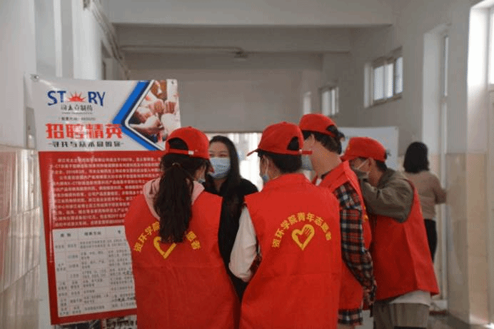 活动志愿者们听从现场老师指挥,积极配合企业工作人员,有条不紊的引导面试人员到相应的面试场地,并且维持着教学楼安静的学习环境,充分展现了当代老员工的热情与朝气,也表现出青年志愿者服务他人、乐于奉献的精神,将志愿者活动的本质融入到了活动中。