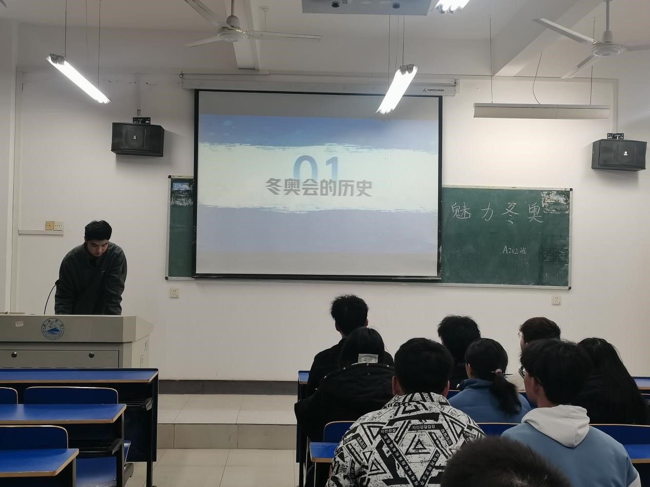 活动期间,各班班长站在讲台上讲解本次主题班会的PPT,同时带领班级同学一起观看体育赛事的精彩瞬间。一张张冬奥健儿和女足队员在运动场上不断挑战自我的照片,一幅幅中国国旗高高升起的画面让人热血沸腾。活动过后同学们纷纷表示看到了无数个“拼搏照耀理想,坚持铸就成功”的瞬间、“功成不必在我,功成必定有我”的团结合作,学到了敢于拼搏、乐于奉献、永不放弃的精神品质。