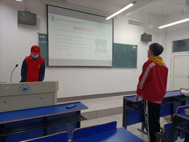 为保证此次活动顺利开展,志愿者们设计并制作了健康知识宣传册。青年志愿者从认识冠状病毒症状、员工如何防控、校园如何防控、佩戴口罩的方法及进入校园的自我防护要点等多方面讲述了相关专业知识。提醒同学们特别要重视正确的七步洗手法以及打喷嚏、咳嗽的注意事项,从自身做起就是最好的防护。