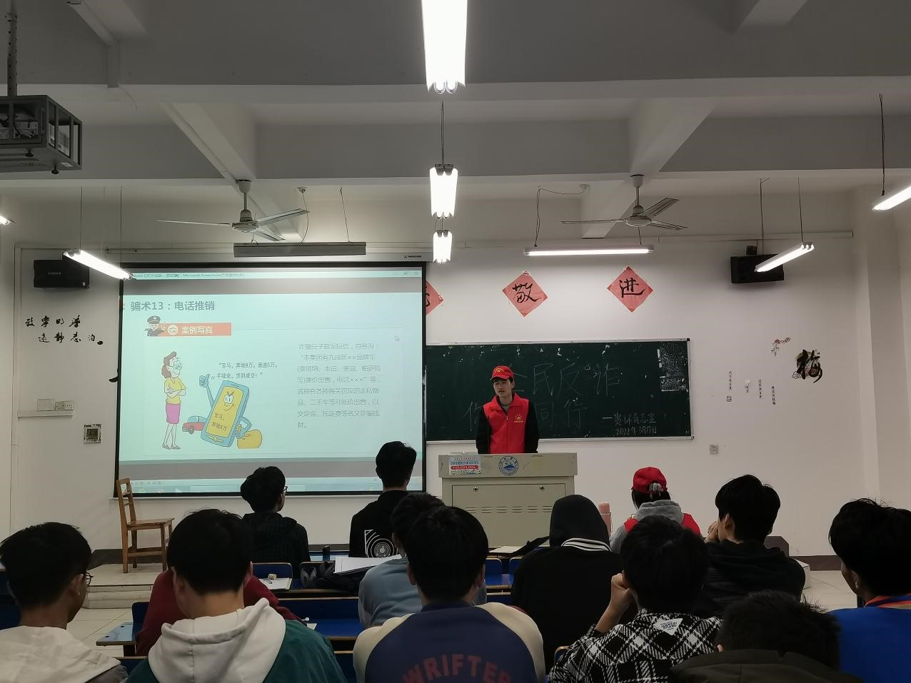 为提高同学们对电信诈骗手法的识别和防范能力,进一步加大校园防诈骗宣传力度、普及反诈知识、增强防范意识、营造平安和谐的校园环境,2022年3月17日,MK体育组织青年志愿者服务队开展以“防范诈骗,人人参与”为主题的防范诈骗宣传活动。此次活动由青年志愿者服务队成员组织宣讲,全体资源环境员工参与,活动顺利举行。