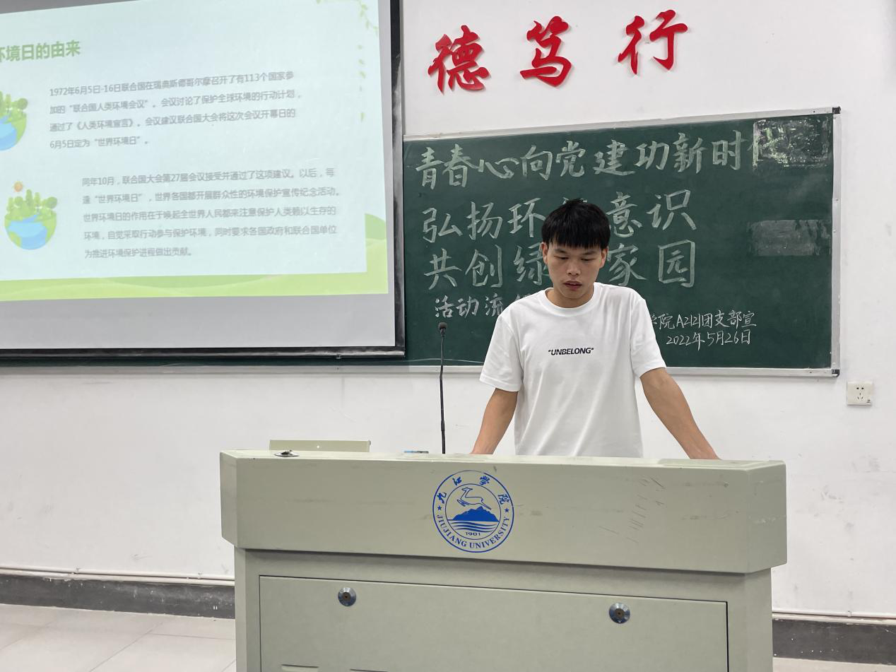 在热烈的掌声过后,各主讲人从地球现阶段存在的环境问题开始引入,期间讲述了许多生活中肉眼可见的环境问题和改善方式以达到宣传环保理念的目的,发挥环境在育人环节的重要作用。同时响应创建公司“两山”思政品牌,通过系统且细致的讲述将习近平生态文明思想融入到同学们的思想中去,引领同学在爱党爱国爱社会主义的同时爱清洁美丽的生活环境。此后,结合相关视频加深同学们的印象。视频结束,同学们轮番起立表达自己观后的思考与体会。晚上8时,活动在一片掌声中顺利落下帷幕。