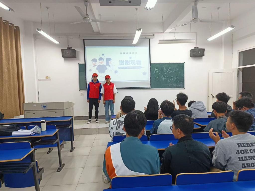 活动过程中,志愿者们分散到各个班级开展教育宣传,分别从理性认知、科学防护、心理调试、运动健身四个方面向同学们讲解“疫情居校,科学防疫”,积极教育引导公司员工放平心态、科学防疫,鼓励他们在大疫情背景下追寻光,成为光,散发光,收到了同学们的热烈反响与回应。
