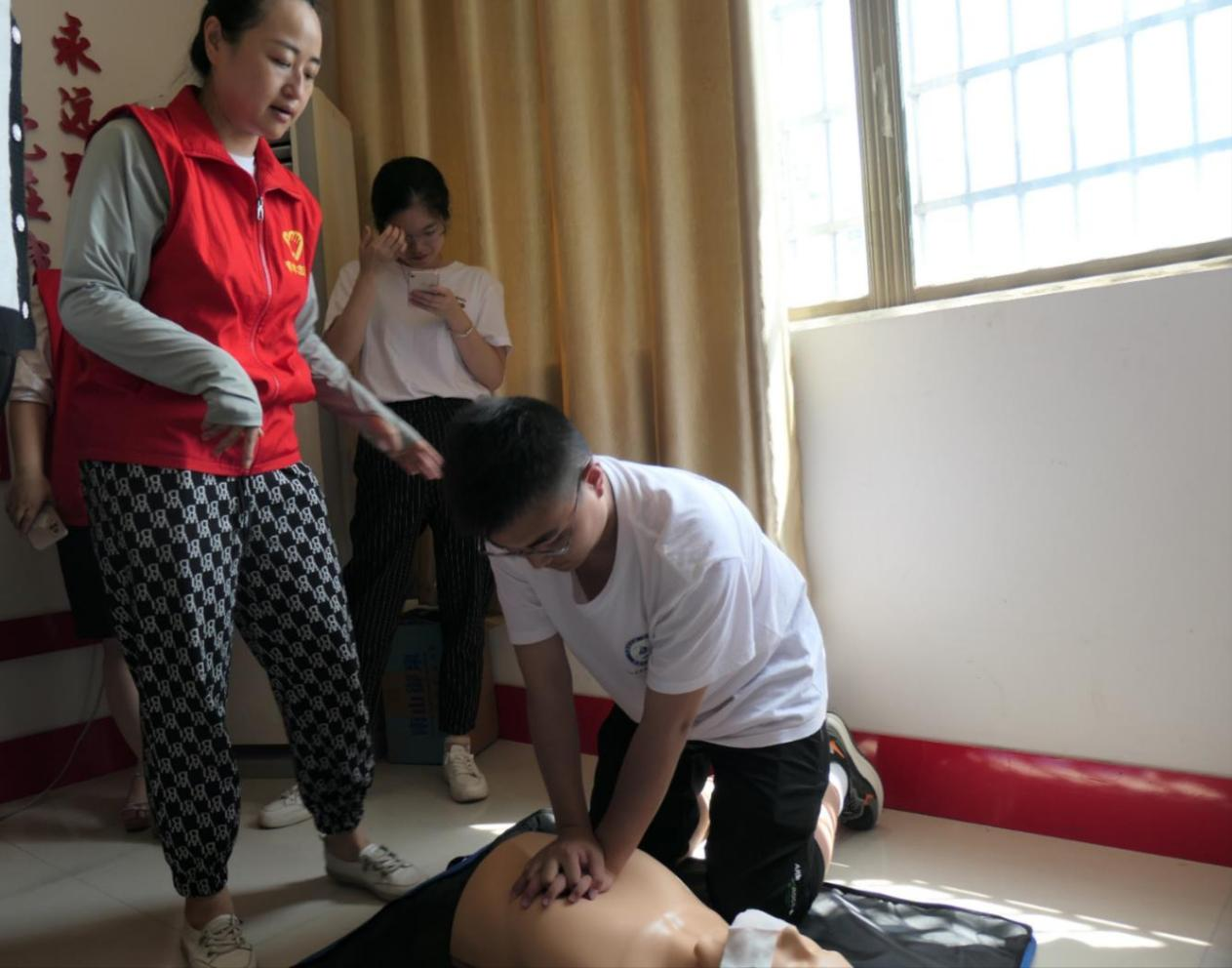 在本次活动中,实践队员通过详细讲解防溺水、溺水急救、遇到危险如何自救互救等相关安全知识,集体观看防溺水视频、发放有关手册及发放印有防溺水有关知识的扇子等方式向村民们宣传防溺水安全知识,教导孩子们不能在没有家长带领下私自下水游泳,不能到无安全设施,要学会保护自身的人身安全,同时与九江市卫生公司学习交流了心肺复苏、海姆利克式等急救法相关知识,并进行入户宣传,给村民普及防溺水相关知识。