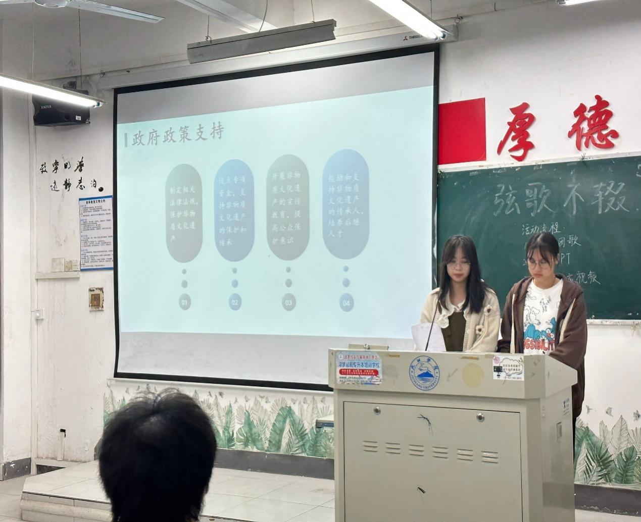 此次活动中,各团支部组织本支部团员与青年对公司校歌的由来和内容进行资料搜集整理,重点学习讨论校歌所传递的精神力量,并在团日活动中进行分析讨论与交流心得。同时通过PPT讲解的方式让同学们进一步了解非遗文化。