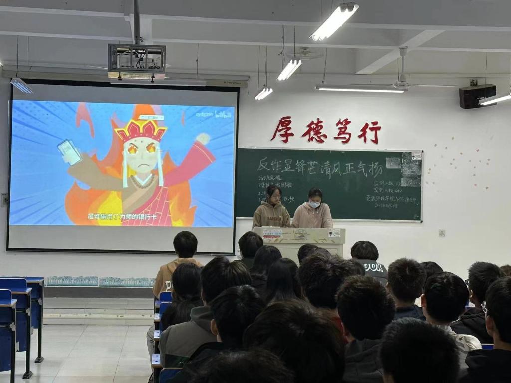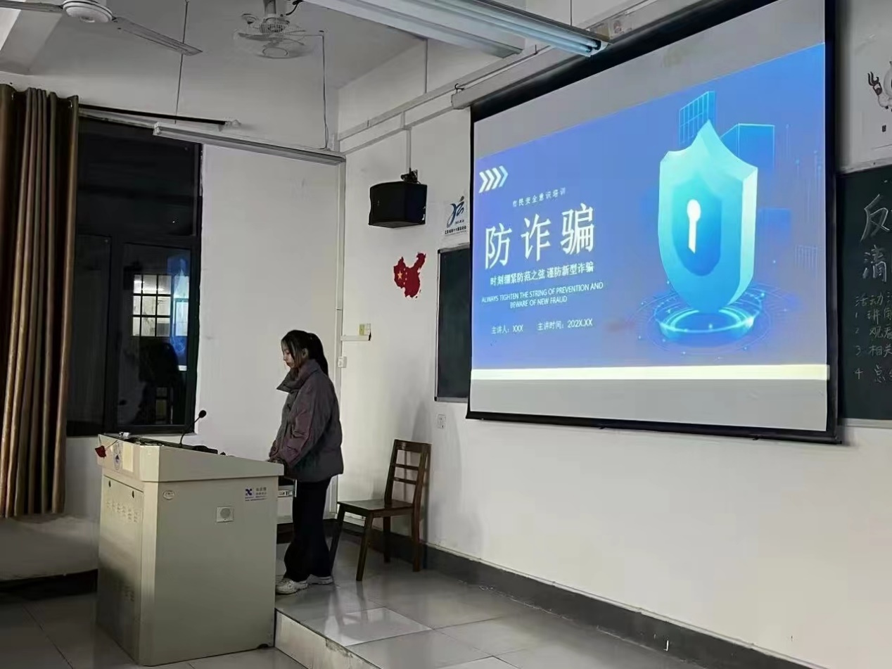 一曲团歌拉开活动的帷幕。活动中,各班主讲人与同学们共同分析相关案例,就案例中的现象积极发表自己的看法,通过问答方式,让同学们了解了这些典型案件中的诈骗方式以及基本处理手段。在不断发展的新时代,科技水平的提高使得不法分子有了更多的可乘之机,新式诈骗手段层出不穷。针对老员工实际生活,各班观看官方视频的介绍,了解了防范虚假信息诈骗的相关知识及防范对策,提高了同学们对诈骗集团诈骗手段的认识。