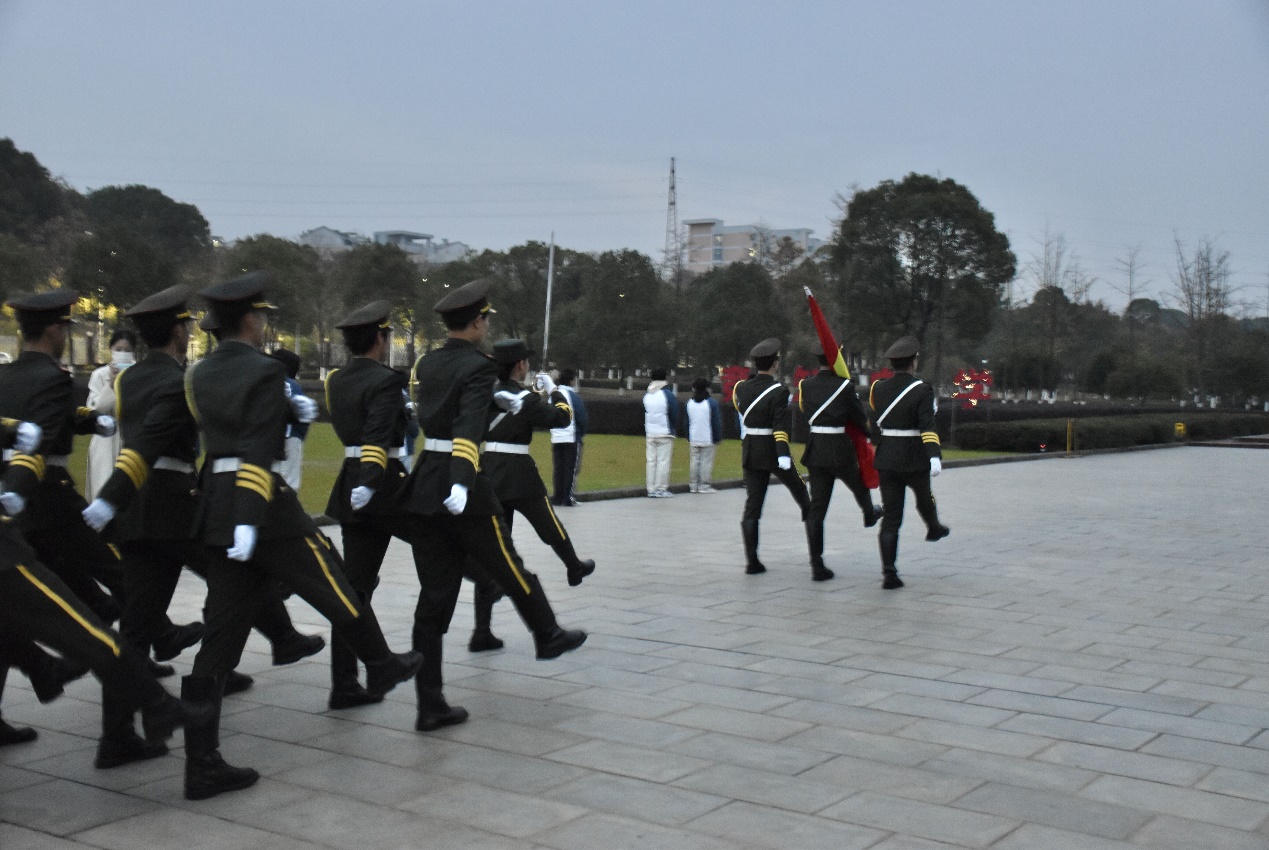 清晨7时整,升国旗仪式正式开始。国旗护卫队的队员迈着整齐划一、铿锵有力的步伐,护送着五星红旗正步走向旗杆。全体师生面向国旗肃立致礼。随着激昂的《义勇军进行曲》奏响,师生们注视着五星红旗冉冉升起,在熠熠晨光中迎风飘扬。