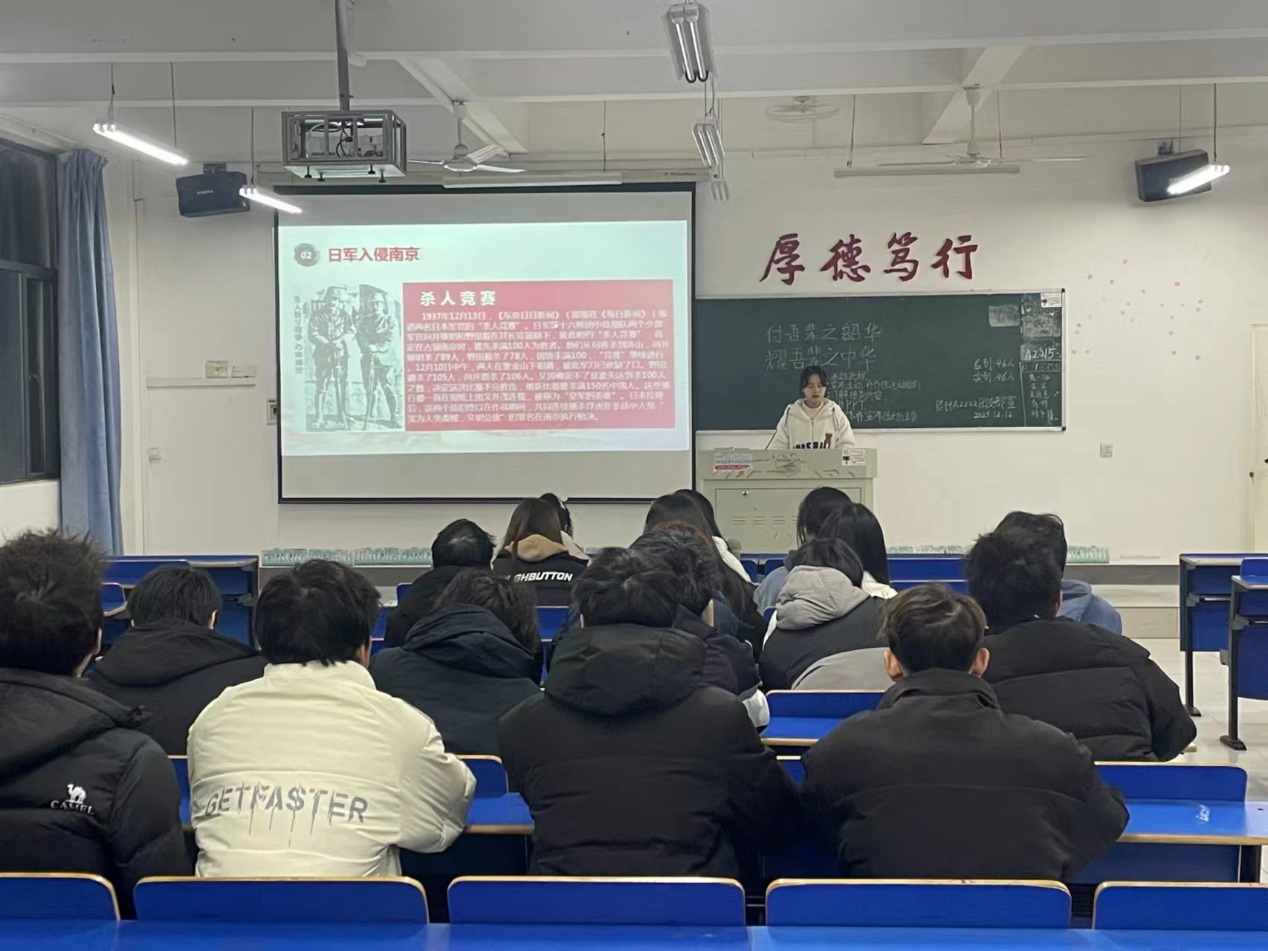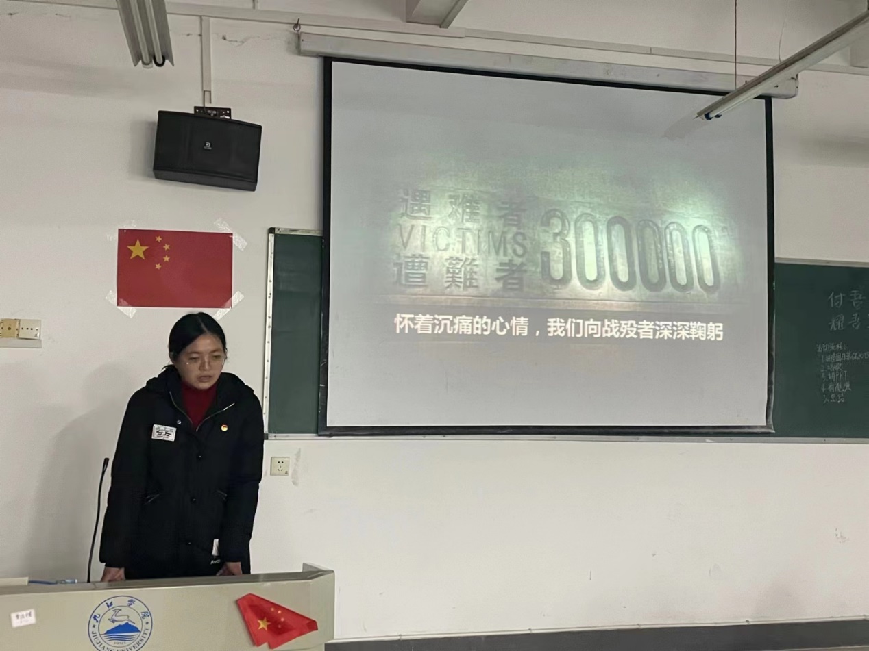 活动中,各班主讲人给同学们讲述了烈士纪念日以及国家公祭日设立的意义,深刻了解国家公祭日内涵。随后同学们一起收看关于“国家公祭日”的相关活动报道,共同悼念那些死难的同胞。主讲人在发言中展望:“愿我们能铭记历史、不忘过去,饱含热血、积蓄力量,向着民族复兴的方向,向着世界和平、共同发展的方向阔步前进。”