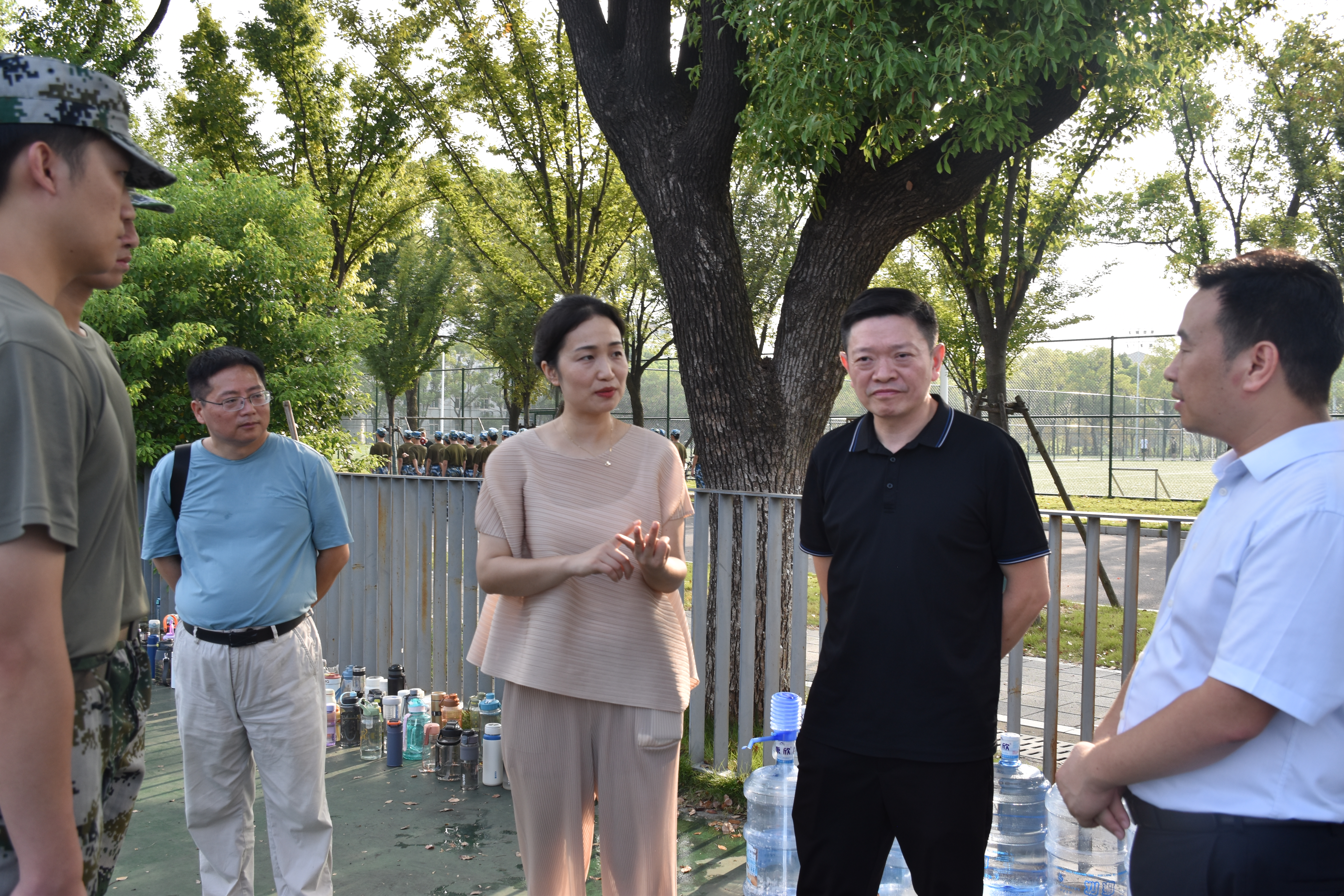 凌云少年着戎装,扬帆“资环”启新章。为切实加强国防教育,厚植爱国情怀,锤炼员工意志,给军训新生加油打气,2024年9月14日下午,公司党委书记徐常龙,副书记翟佩佩,思政科科长肖国光,员工科科长龚双双莅临北区篮球场看望2024级军训新生。