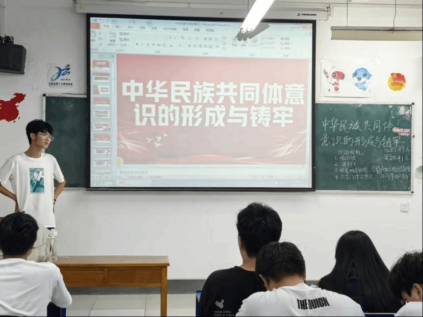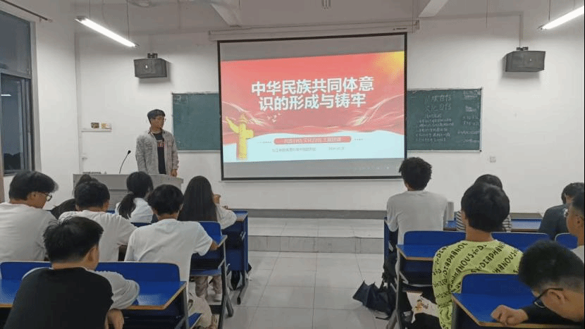 在热烈掌声过后,团日活动准时开始。各班团支书和组织委员组织各班开展铸牢中华民族共同体宣讲活动,主讲人围绕习近平总书记关于加强和改进民族工作的重要思想,为大家讲解其中内涵,让大家对中华民族共同体意识有进一步的了解。