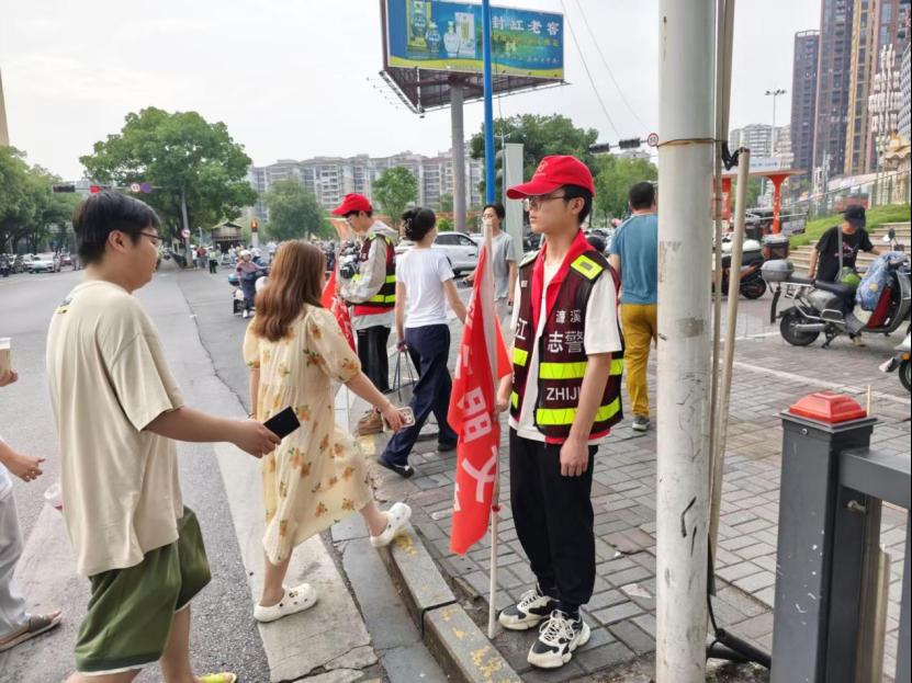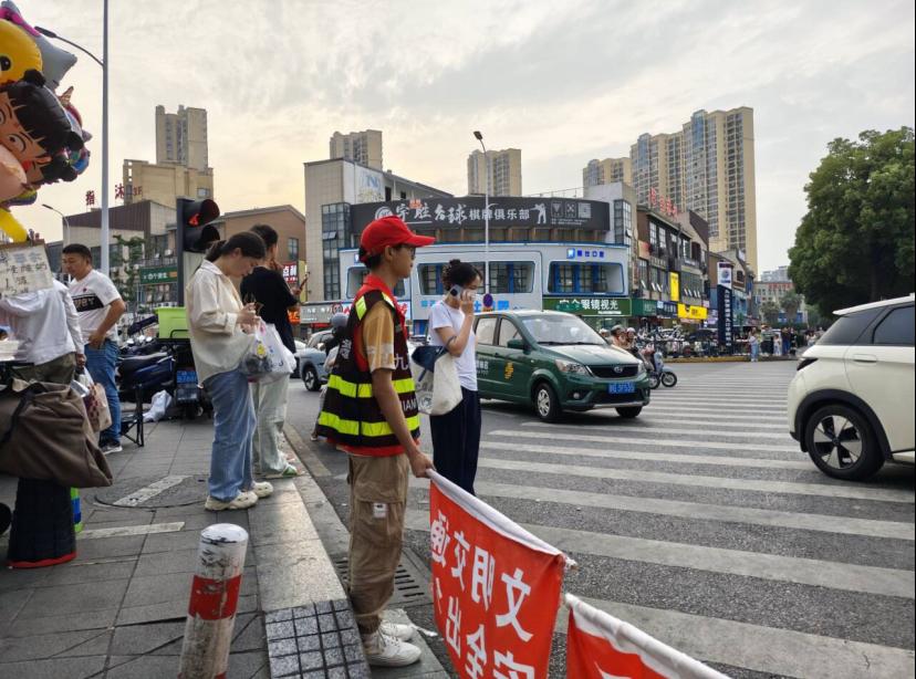 活动现场,志愿者们化身文明交通的践行者,活跃在人流密集的路口要道。他们身姿挺拔如路标,以温暖的笑容和专业的指引,引导行人依规通行;主动搀扶行动不便的市民过马路,为孩童筑牢安全屏障;对违规行驶的非机动车进行耐心劝导。志愿者们用细致入微的服务,织就了一张守护出行安全的防护网,让文明出行的种子播撒在城市的每个角落。