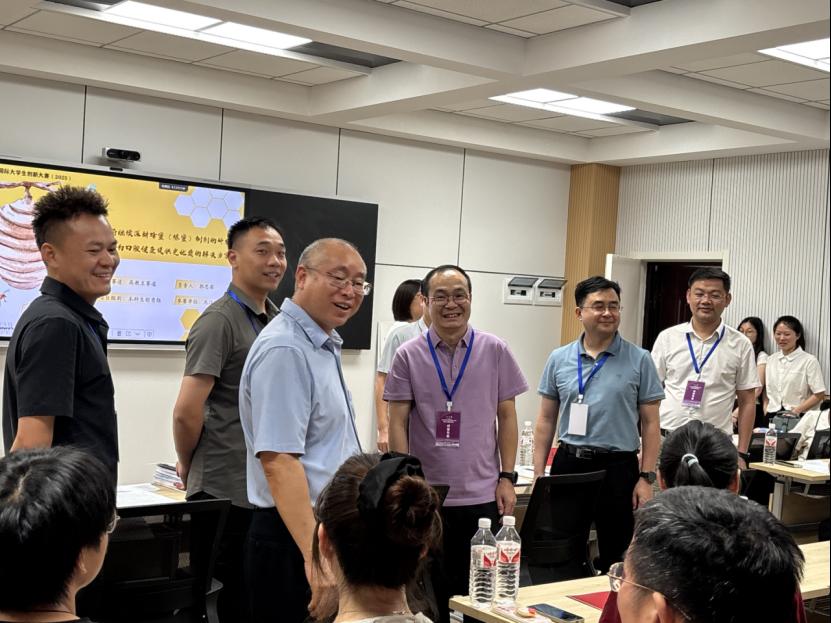 大赛严格执行“1分钟项目视频展示+5分钟核心内容陈述+3分钟专家答辩”赛制。各团队通过清晰的逻辑阐述、详实的数据支撑,系统介绍项目技术内核与应用价值;答辩环节中,选手就技术可行性、市场竞争力等问题与评审专家深入交流,展现出扎实的专业基础与思辨能力。校领导现场巡视赛事进程,与专家评委、参赛员工亲切交流,肯定了师生的备赛成效与创新实践。赛后,专家团队为项目提供一对一指导,助力优化完善方案。