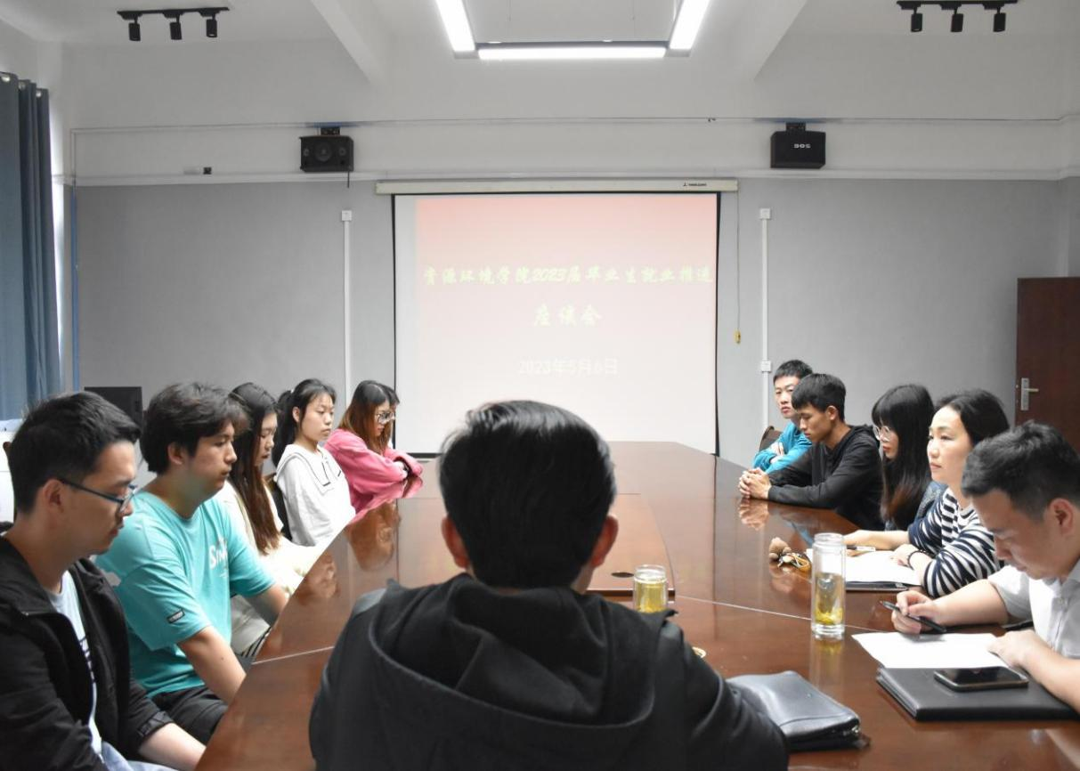 座谈会上,毕业班班主任、就业工作负责人肖国光通报当前阶段的就业情况,传达了江西省教育厅和公司关于就业工作精神和要求。