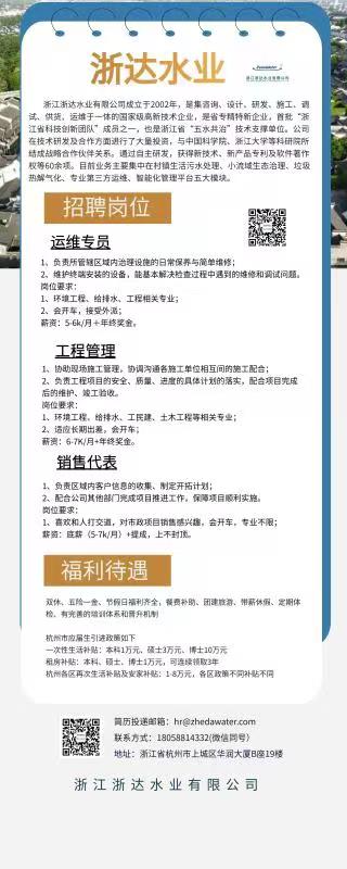 浙江浙达水业有限公司招聘
