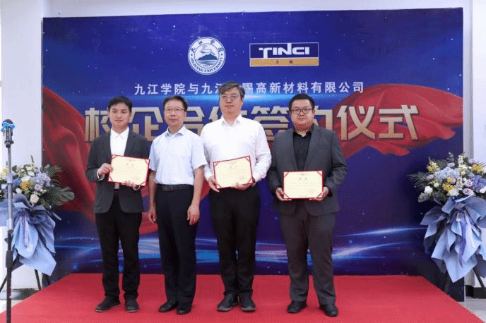 5月26日,化学化工公司、MK体育与九江天赐高新材料有限公司“订单班”签约和教育实训基地揭牌仪式在九江湖口县新材料协同创新中心举行。市政协副主席、化学化工公司经理严平,公司党委书记杨期勇,九江天赐高新材料有限公司法人兼执行董事长赵经纬博士、人力资源总监黄娜等出席签约和揭牌仪式。