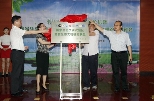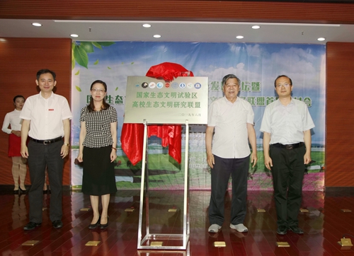 在热烈的掌声中,江西省人大原副主任、省人民政府原副省长、江西生态文明研究促进会理事长胡振鹏教授,江西省生态文明办专职副主任刘兵,九江市副市长李军,九江公司党委书记、江西长江经济带研究院经理赵伟等共同为国家生态文明试验区高校生态文明研究联盟揭牌。