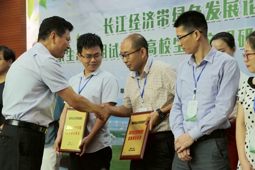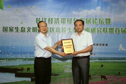 江西省生态文明办专职副主任刘兵为联盟理事长单位公司江西长江经济带研究院授牌。