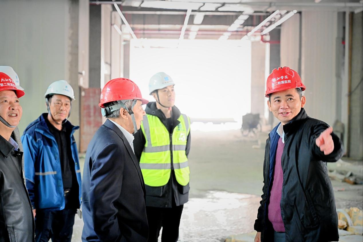 期间,胡振鹏教授在公司党委书记赵伟的陪同下前往新校区和二附院实地考察。赵伟详细介绍了新校区和二附院的建筑标准、校区规划以及该校的学科专业调整和建设等情况。