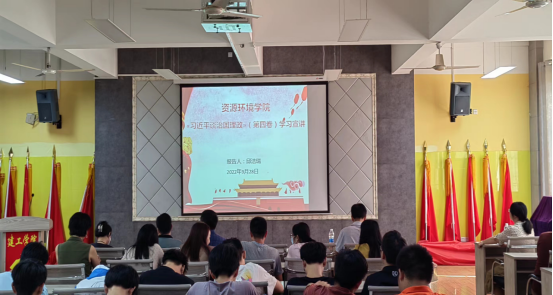 9月28日下午,在望庐楼101报告厅,资环公司邀请马克思主义公司邱洁瑞副教授为师生作《习近平谈治国理政》第四卷专题辅导报告。会议由公司党委书记杨期勇主持,公司全体教职工及员工代表参加。