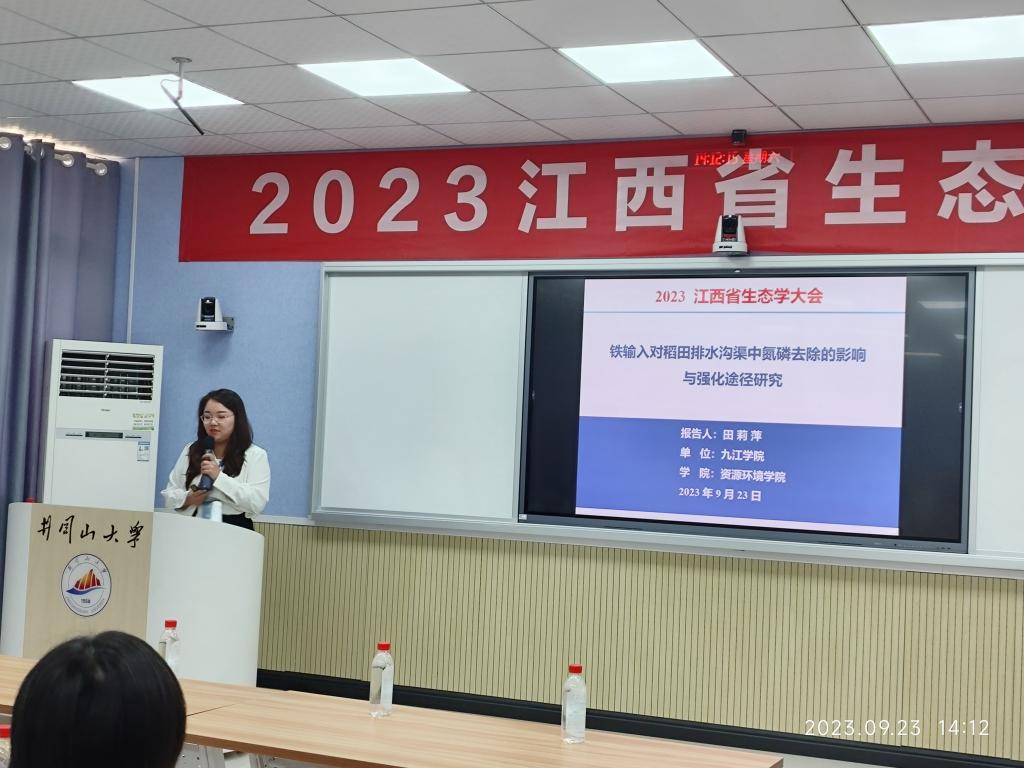 本次大会分为五个会场,围绕生物多样性、湿地生态、森林生态、双碳战略与温室气体排放、生态文明与生态产品价值等议题,安排了50余场报告。田莉萍博士代表MK体育官网,在湿地生态会场做了题为“铁输入对稻田排水沟渠中氮磷去除的影响与强化途径研究 ”的报告,并荣获优秀学术报告二等奖。大会结束后,与会人员前往井冈山国家农业科技园进行了调研考察。