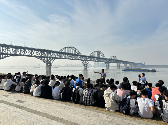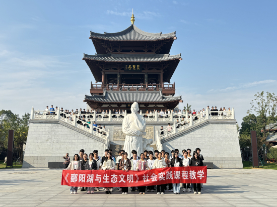 来到浔阳江畔,“一江碧水向东流”的生态画卷跃入眼帘。《鄱阳湖与生态文明》课程负责人汤明教授向同学们讲述了习近平总书记的“长江故事”,念之行之,只为大江焕新颜,希望同学们牢记习近平总书记关于长江“共抓大保护,不搞大开发”的殷殷重托,树牢生态责任意识,打好专业基础知识,拓展实践能力,为长江绿色发展贡献学子力量。
