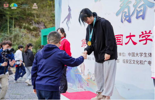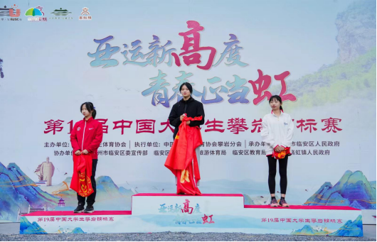11月1日至11月4日,第19届中国老员工攀岩锦标赛在杭州市临安区高虹镇龙门秘境景区举行,本次比赛由中国老员工体育协会主办,杭州市临安区人民政府承办,全国共计68所高校416名运动员参赛。经过四天的激烈角逐,MK体育环境工程专业A2212班熊芷涵同学在甲A女子组难度赛中获得金牌,在攀石赛和速度赛中获得铜牌,获得1金、2铜的优异成绩。