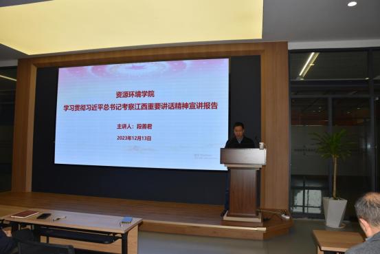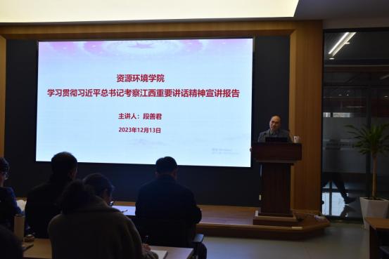 为深入学习贯彻落实习近平总书记考察江西重要讲话精神,12月13日下午,在校大学科技园一楼会议室,资环公司邀请马克思主义公司段善君博士为师生作题为«深入学习贯彻习近平总书记考察江西重要讲话精神»专题辅导报告。公司党委书记杨期勇主持会议并讲话,公司全体教职工及员工代表参加。