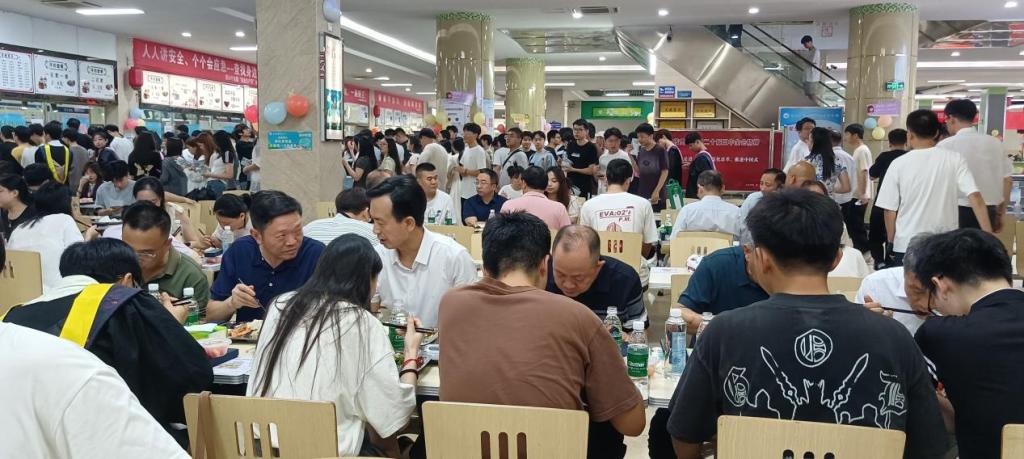 6月21日中午,副董事长吴维勇、公司党委书记徐常龙及员工科负责人等一起来到员工三食堂,与毕业生代表一起共进午餐,师生们畅所欲言。毕业生们表达了即将离校的不舍之情,分享在校期间的学习与成长感悟,表达了感谢母校和老师的情感。吴维勇等领导为同学们在校期间取得的成绩感到自豪,并对同学们顺利毕业表示祝贺。希望同学们要不断提升自己的创新意识和能力,不断成长和进步,进一步实现自己人生的下一个目标。