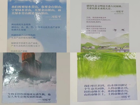 同时,为全面贯彻落实习近平总书记关于生态文明的重要思想,引导资环学子树立尊重自然、顺应自然、保护自然的生态文明理念,全方位、全过程、持续化培养员工生态意识,提高同学们的专业素养,打造特色育人环境,在此次的"我为教室扮新装"系列活动中,各班级在各个教室的醒目位置都张贴了习近平总书记关于生态文明的金句,时刻提醒着同学们深耕专业、坚守初心,勿忘肩之重担、勿负党之期望。
