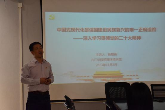动员会后,杨期勇为学员作题为《中国式现代化是强国建设民族复兴的唯一正确道路——深入学习党的二十大精神》的专题辅导。深入浅出的讲解使学员们对中国式现代化的重大意义、中国式现代化的中国特色和本质要求有了更深的认识和理解,推动高质量发展谱写中国式现代化新篇章,要从中国共产党人精神谱系中汲取不竭力量。