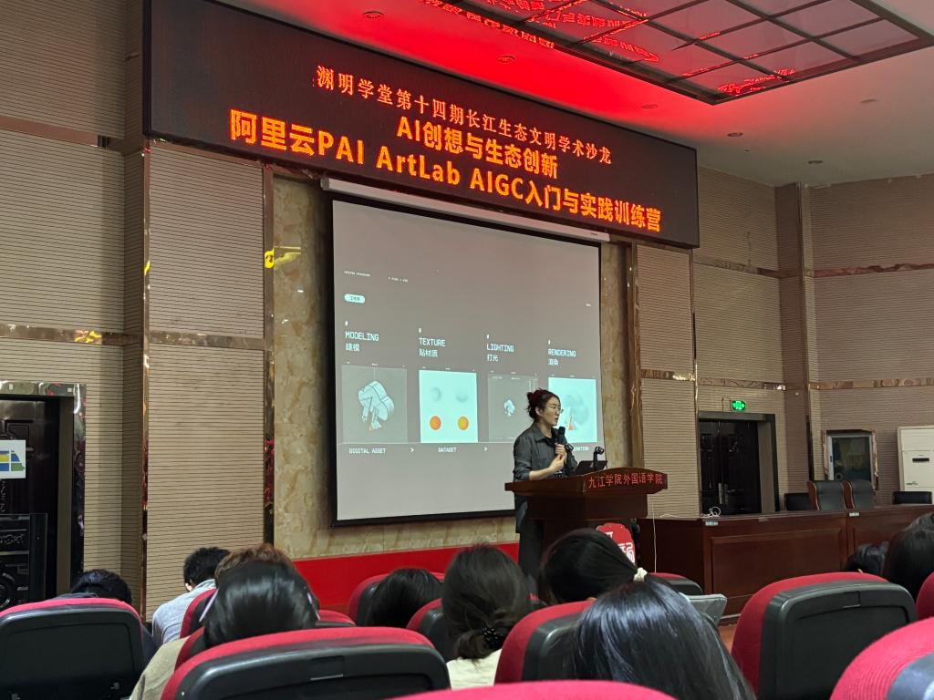 11月11日下午,第14期长江生态文明学术沙龙暨“AI创想与生态创新:阿里云PAI ArtLab AIGC入门与实践训练营”在MK体育官网香远楼3楼报告厅成功举办。此次活动由流域生态过程与信息江西省重点实验室、渊明学堂及MK体育联合主办,旨在帮助高校员工深入学习人工智能生成内容(AIGC)技术,并探索其在生态文明领域的创新潜力。活动吸引了360余名师生参与,现场气氛活跃,反响热烈。